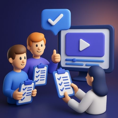 Reviews the video to ensure visual, audio, and pacing standards are met. Confirms everything matches the brief before delivery.